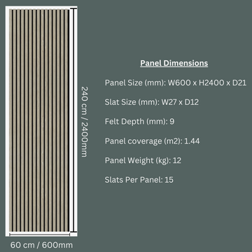 Featuring a high-quality, smooth wood veneer finish and modern lamella strips, these panels are set against a backdrop of eco-friendly, recycled acoustic felt, ensuring excellent acoustic properties. Designed for simplicity, the quick and easy installation process transforms your room instantly. Elevate your space with the Acoustic Wood Panel in Autumn Wood, where functionality meets modern style, making every room both visually appealing and acoustically comfortable