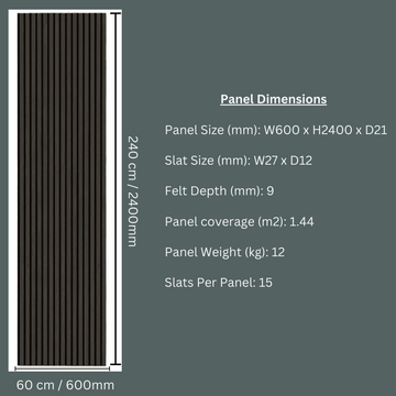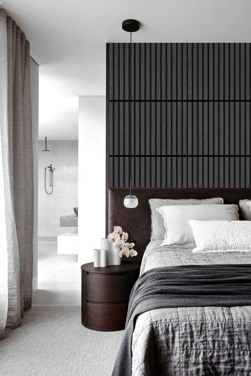 • Elevate your interiors with our sophisticated Acoustic Wood Panel in Black Oak, the quintessential choice for enhancing both the acoustic and aesthetic quality of any space. With its stunning dark hue and the natural texture of wood grain, this panel not only achieves up to 50% noise reduction but also adds a touch of natural elegance. The Black Oak panel's deep complexion makes it especially suited for home cinema rooms, where it enhances the audio-visual experience, or as a striking contrast on feature walls, bringing a bold and dramatic flair to your décor.